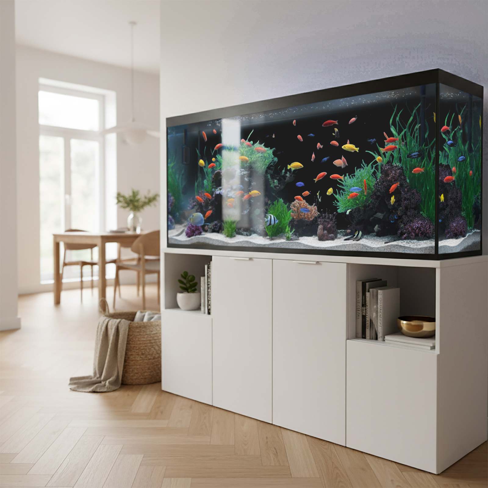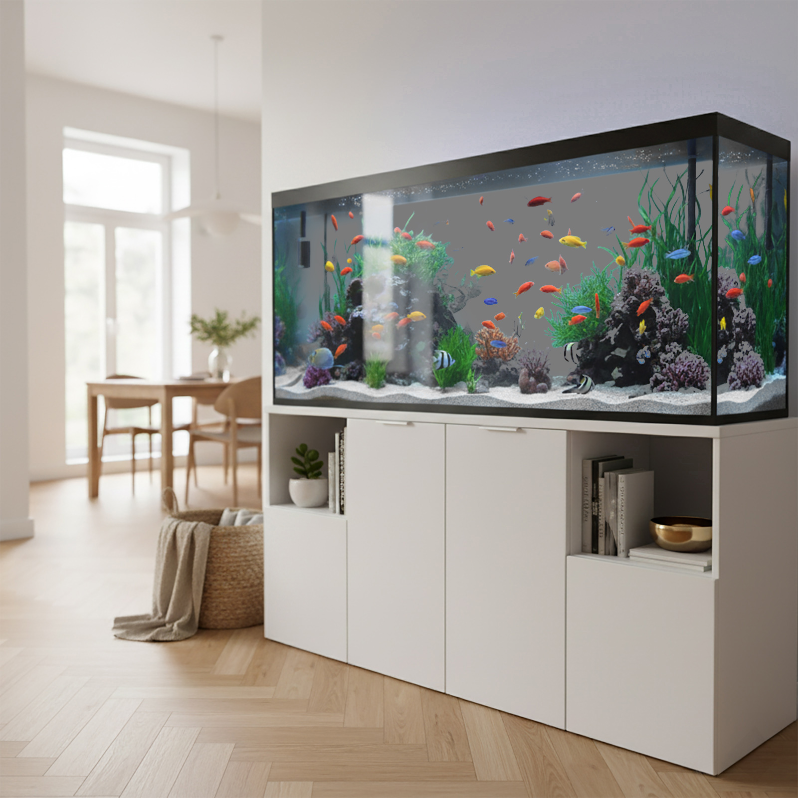 Klebefolien in einheitlichen Glanzfarben eignen sich hervorragend als Hintergrund für Aquarien und Terrarien. Bei Folien mit Mustern kommen die Pflanzen meist nicht optimal zur Geltung. Ein einfarbiger Hintergrund sorgt hingegen für stärkeren Kontrast, sodass Ihre Dekorationen und Pflanzen deutlich besser sichtbar sind als bei mehrfarbigen Folien. Kleben Sie die Folie einfach auf die Außenseite der Rückwand Ihres Aquariums oder Terrariums.