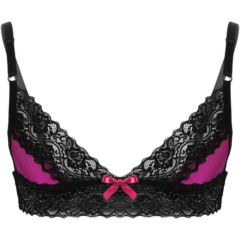 Black bra features See-through mesh design, plunge v-neckline, y-shape back, pull on closure.