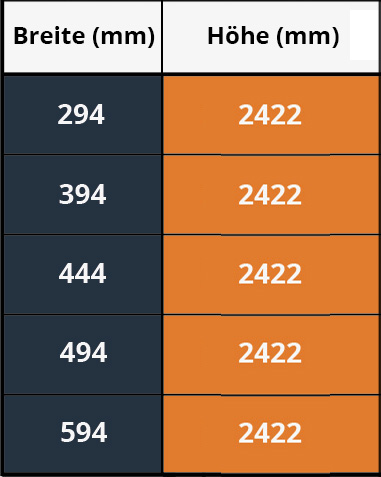 Die Türen sind in den folgenden Größen verfügbar: