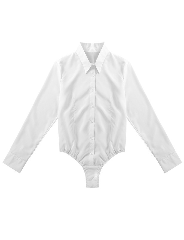 Women’s fashion one-piece solid color bodysuit shirts, front button closure.