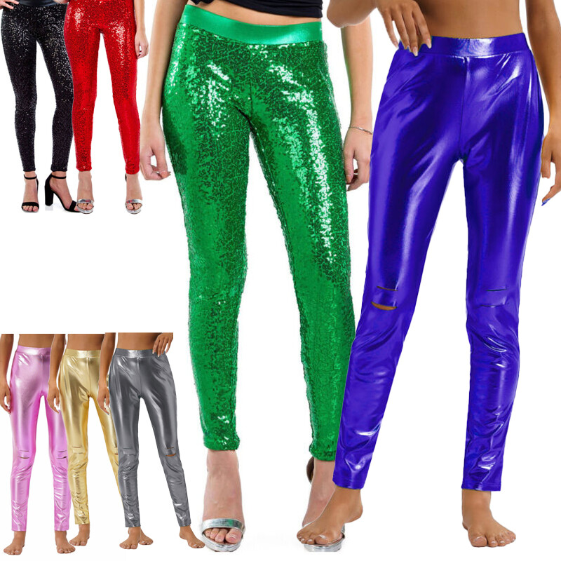Womens Wet Look Patent Leather Pants Zipper Crotch Pantyhose.