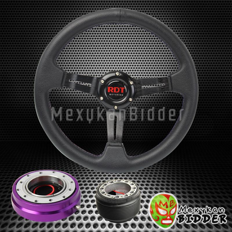BLACK DEEP DISH STEERING WHEEL + PURPLE QUICK RELEASE FOR HONDA CIVIC 1988-1991