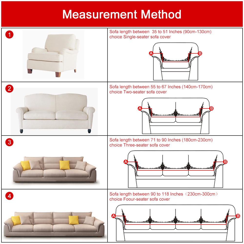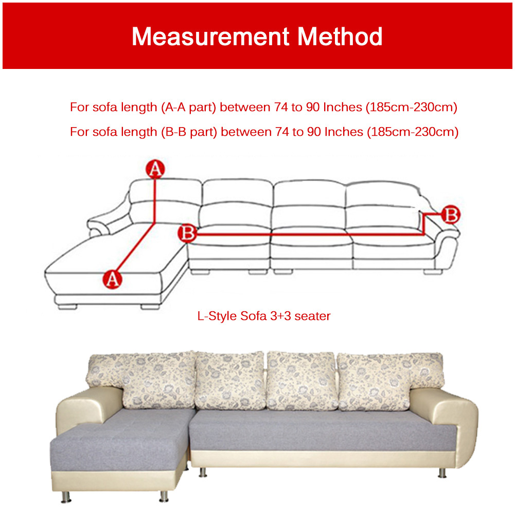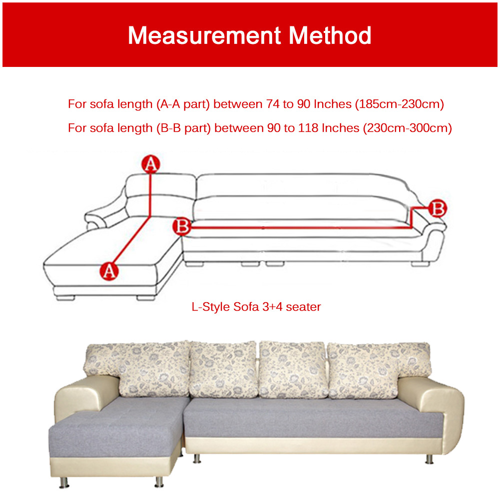 1. Material: 92% Polyester 8% Spandex. 2. Stretches & Recovers Quickly. 3. Stretch fabric is perfect for hard to fit furniture. 4. Machine Washable Easy-Care-Wrinkle Resistant. 5. If you are looking for ways to decorate your living room, don't spend thousands of dollars buying new furniture. Simply give your sofa / Chair a make-over with this stretch slipcover and have a living room with contemporary flair. Sofa Cover Size: 1 Seater: sofa length 90-130 CM / 35 "-51" 2 Seater: sofa length 140-170 CM / 55 "-67" 3 Seater: sofa length 180-230 CM / 71 "-90" 4 Seater: sofa length 230-300 CM / 90 '' - 110 '' L Shape Corner Sofa: (2 + 2 Seater) / (2 + 3 Seater) / (3 + 3 Seater) / (3 + 4 Seater) ❤❤ L-Shape Sofa Cover = AA sofa cover + BB sofa cover ❤❤ Sectional sofa or corner sofa = the size depends on the length of the line AA and BB.