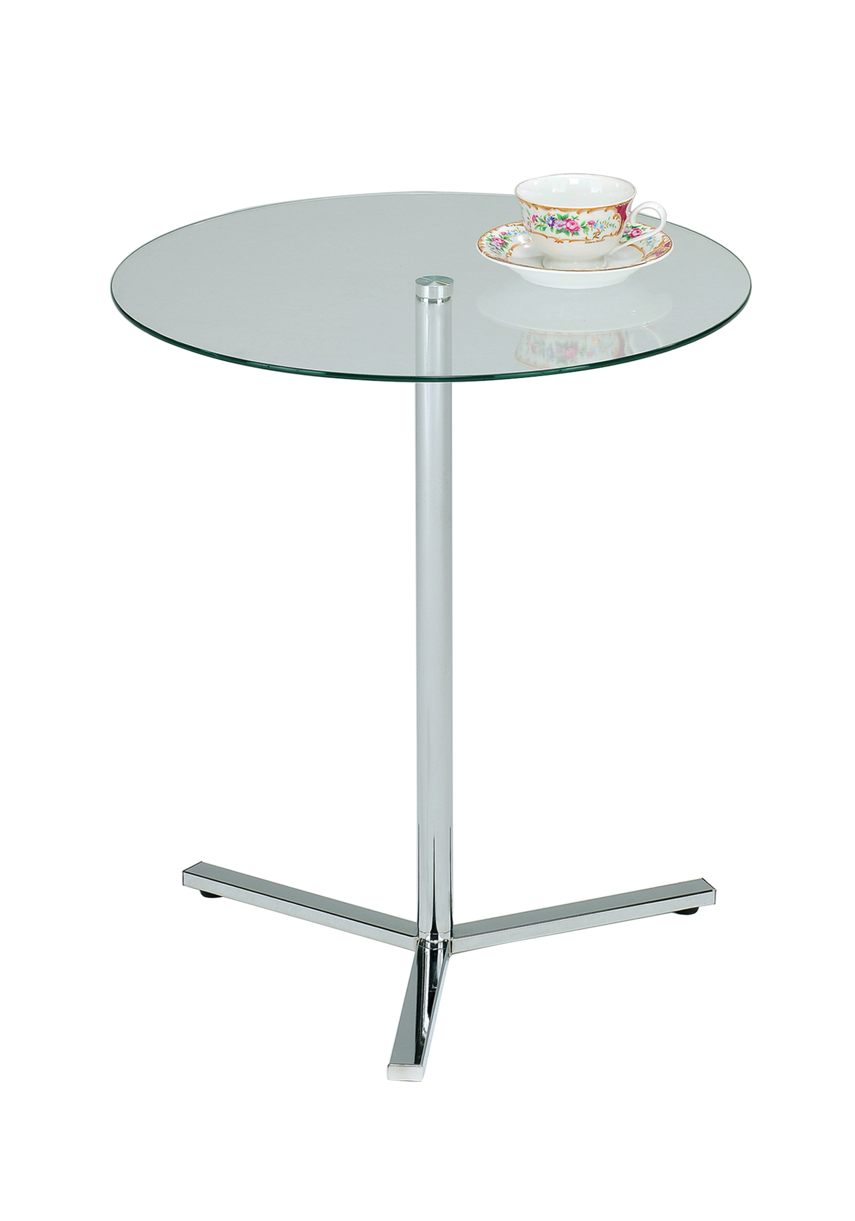 The glass and polished chrome materials and tripod style legs create a stylish, modern look that is sure to fit in with any decor.
