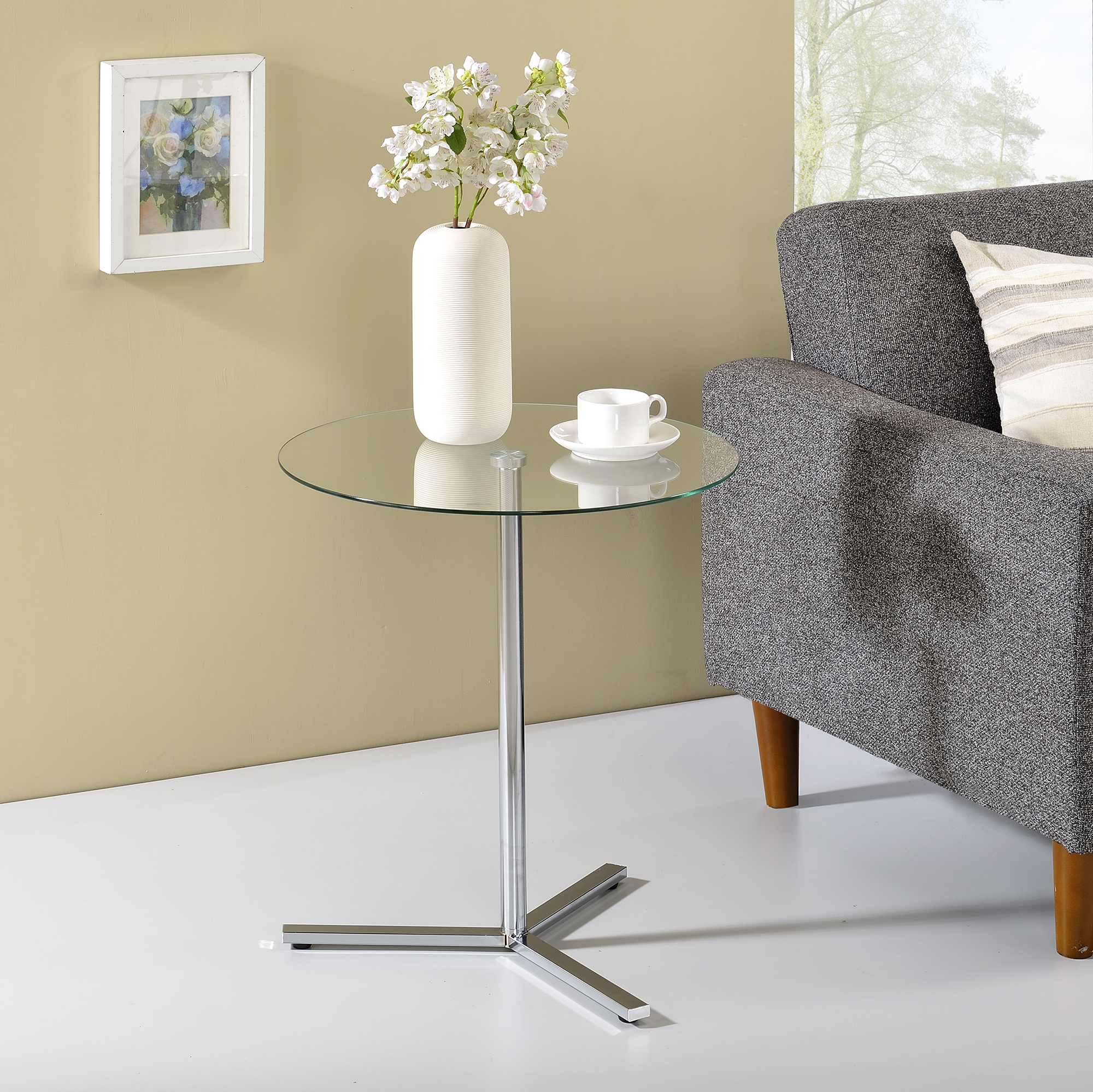Kings Brand Furniture - Modern Accent Side End Table, Chrome Metal / Glass