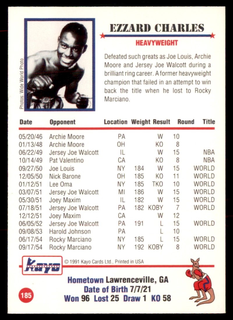 | 1991 Kayo Cards 185 Ezzard Charles | ||||||||||||||||