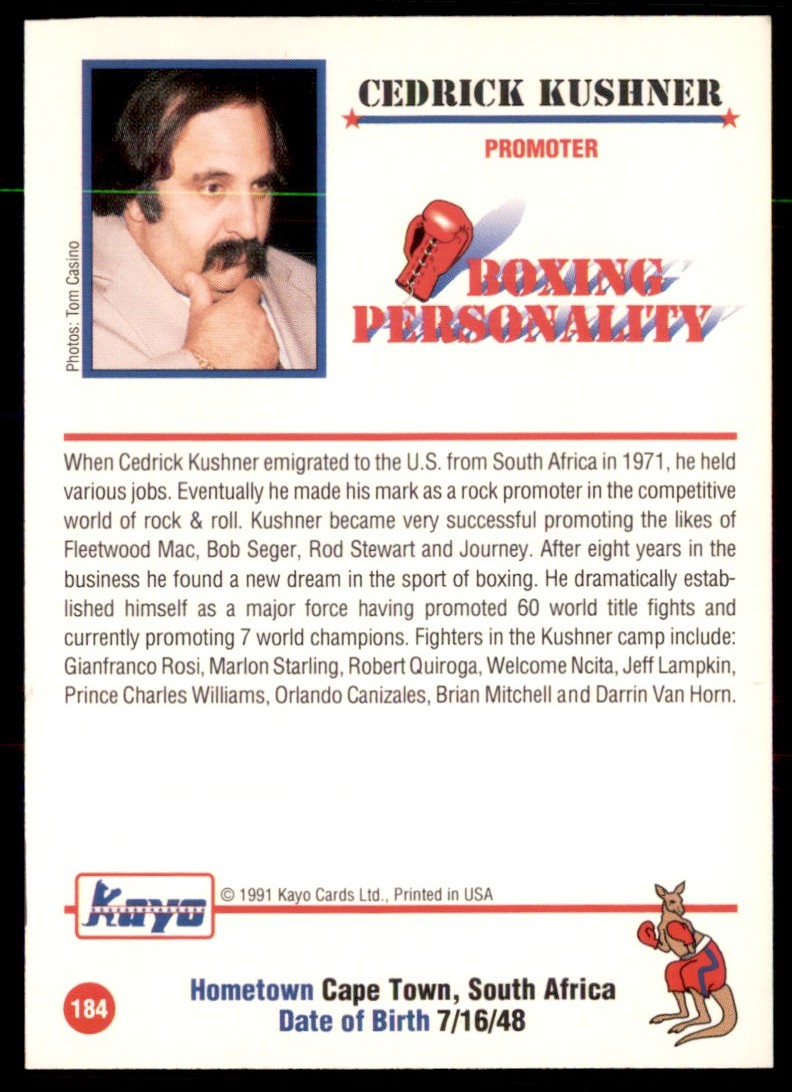 | 1991 Kayo Cards 184 Cedrick Kushner - Promoter | ||||||||||||||