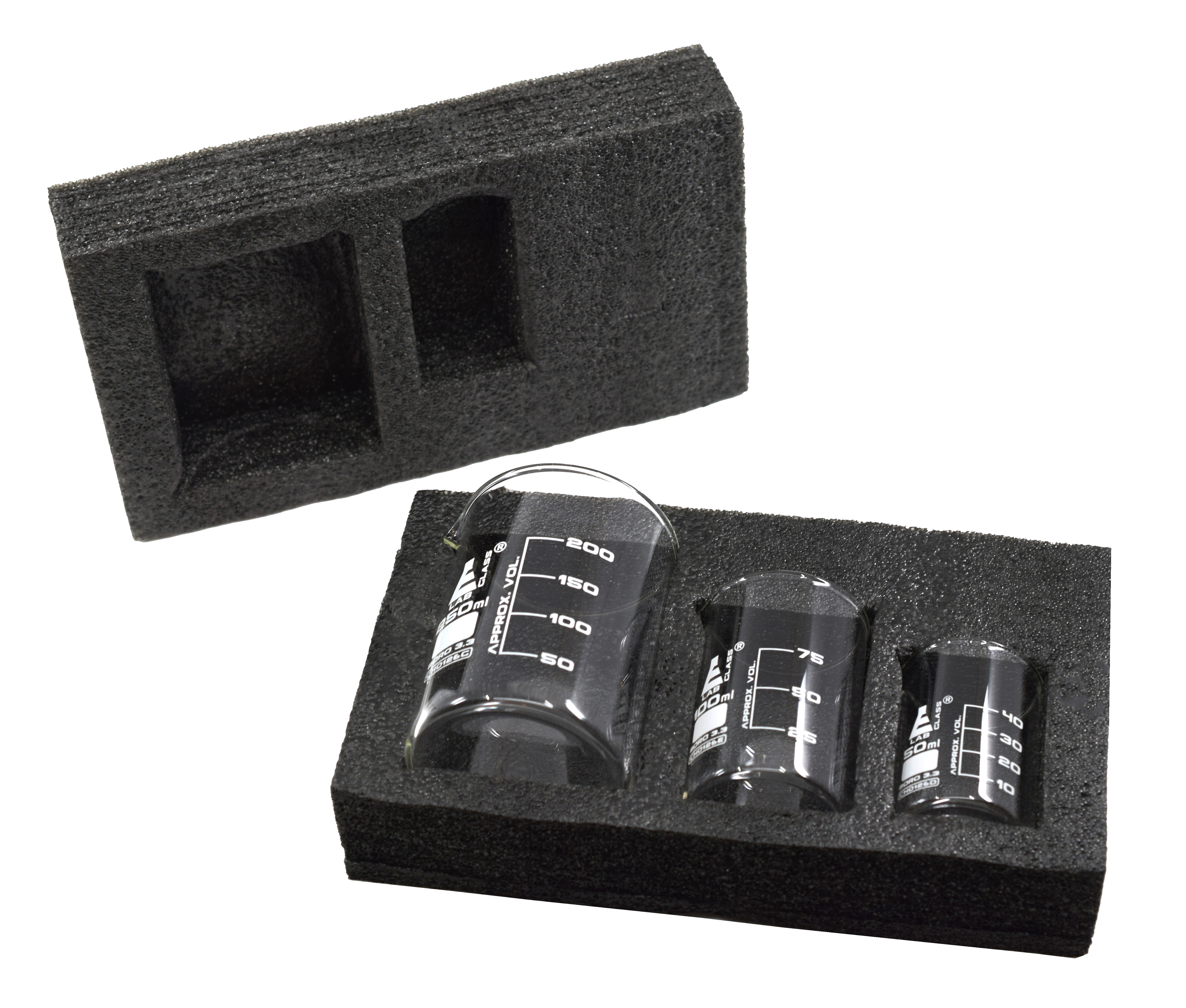 Measurements: (250mL) 3.8" tall, 2.75" outer diameter, 2.5" inner diameter. 3mm wall thickness. (100mL) 2.9" tall, 2" outer diameter, 1.8" inner diameter. 2.5mm wall thickness. (50mL) 2.4" tall, 1.75" outer diameter, 1.6" inner diameter. 2mm wall thickness. Beaker set is packaged in a custom fit, thick foam casing, for safe storage and worry free transport.