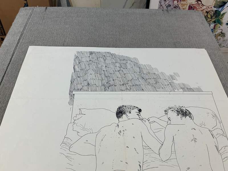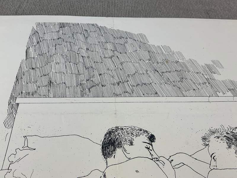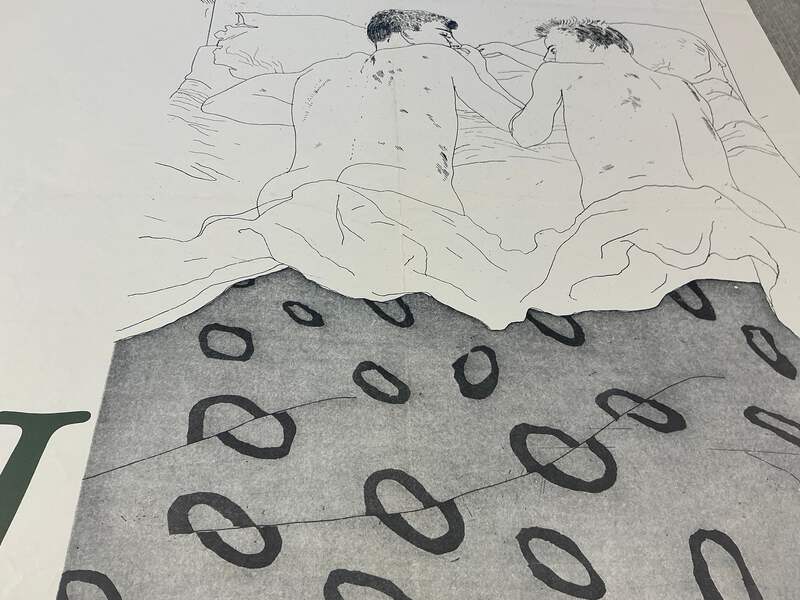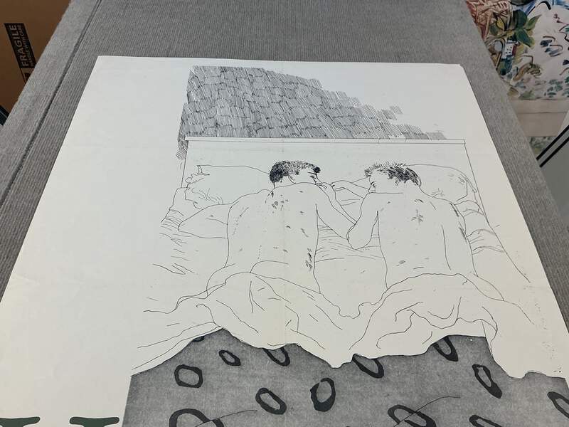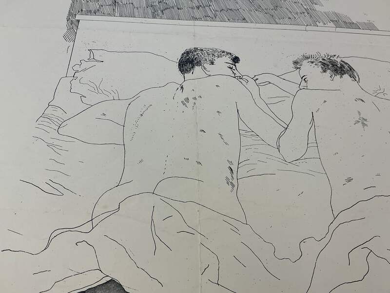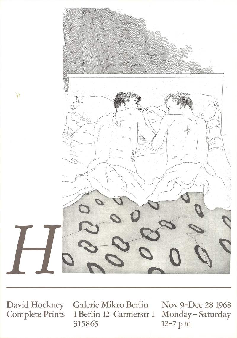 DAVID HOCKNEY Two Boys Aged 23 or 24 33" x 23.5" Poster 1968 Pop Art White, Gray Bed, Man, Men, Lovers