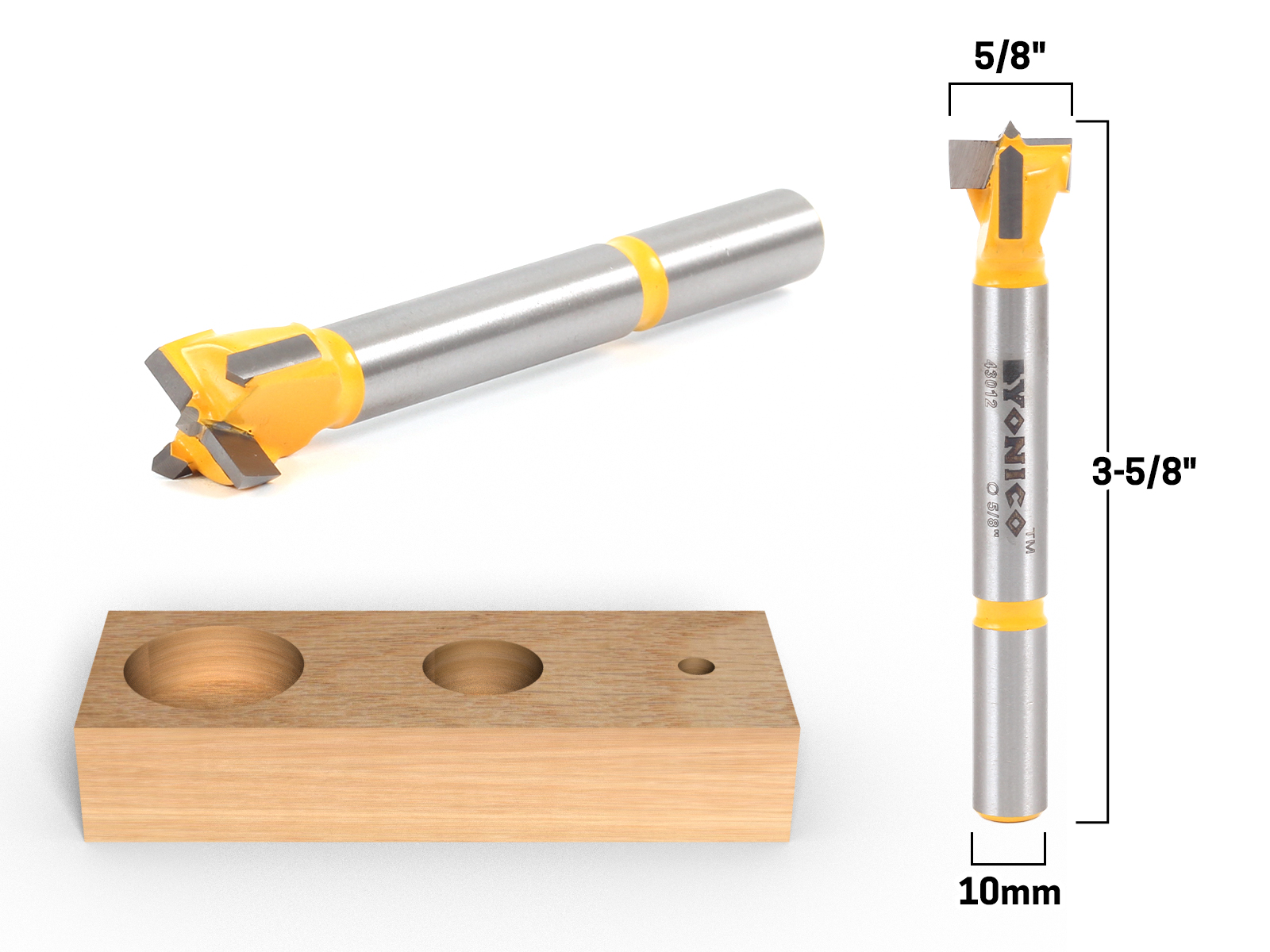 This carbide forstner bit has a 5/8" cutting diameter and a 8mm shank compatible with all standard drill and drill press chucks.