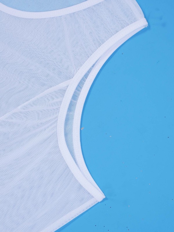 Featuring with see-through mesh, split design, round neck and sleeveless.