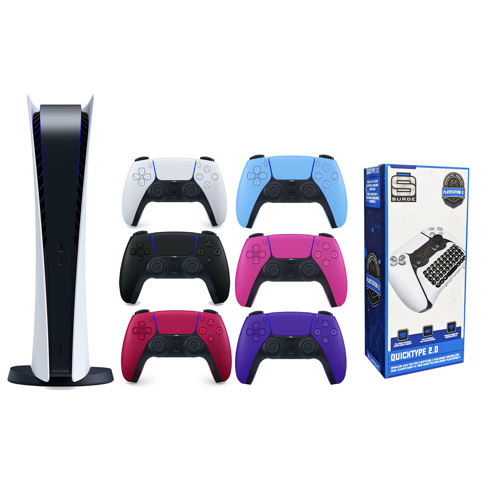Sony Playstation 5 Digital Edition with Extra Controller and Surge Keypad Bundle