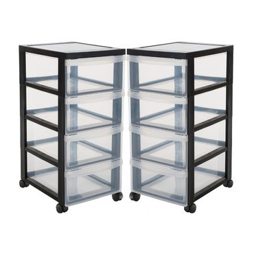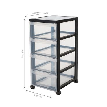 Tolles Set bestehend aus zwei Rollwägen aus Kunststoff ✔ Ausgestattet mit jeweils 4 Schüben pro Wagen ✔ Vier Schübe im XL Format 15 x 29 cm (HxB) ✔ Leichtgängige Rollen auf Metallachse ✔ Korpus in Schwarz, Schübe in Transparent (klar) ✔ Robust und vielseitig ✔ Abwaschbar und leicht zu reinigen ✔ Maße BxTxH gesamt (pro Rollwagen): 29 x 37,5 x 68 cm ✔ Auch unter Bürotischen gut zu positionieren ✔ Made in NL ✔Artikel: