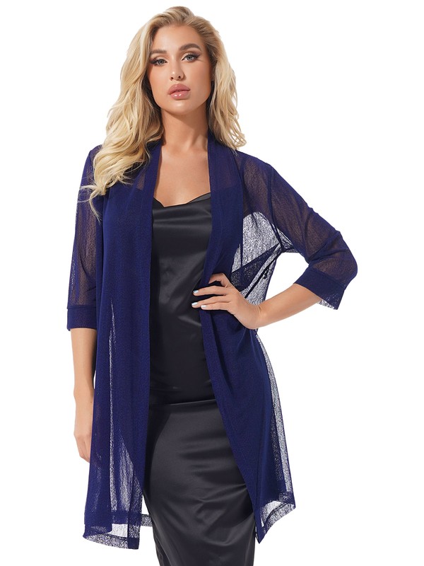 Featuring with semi see-through, 3/4 sleeve, open front design.