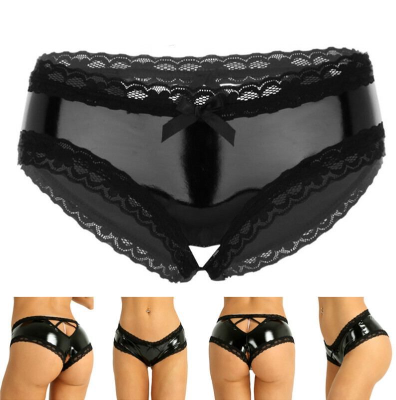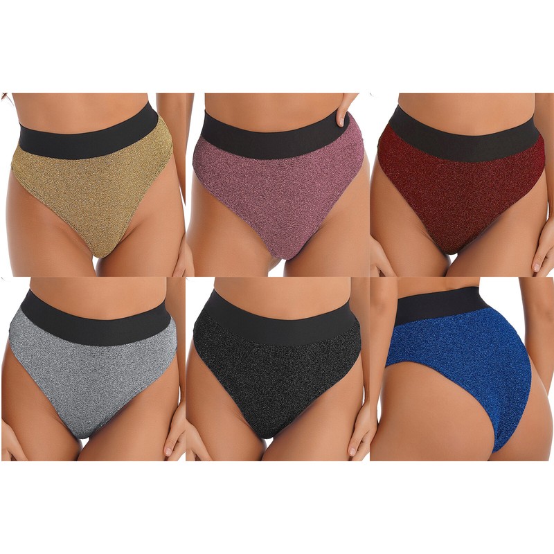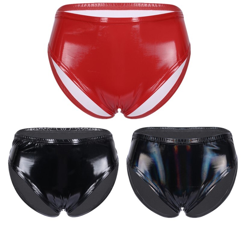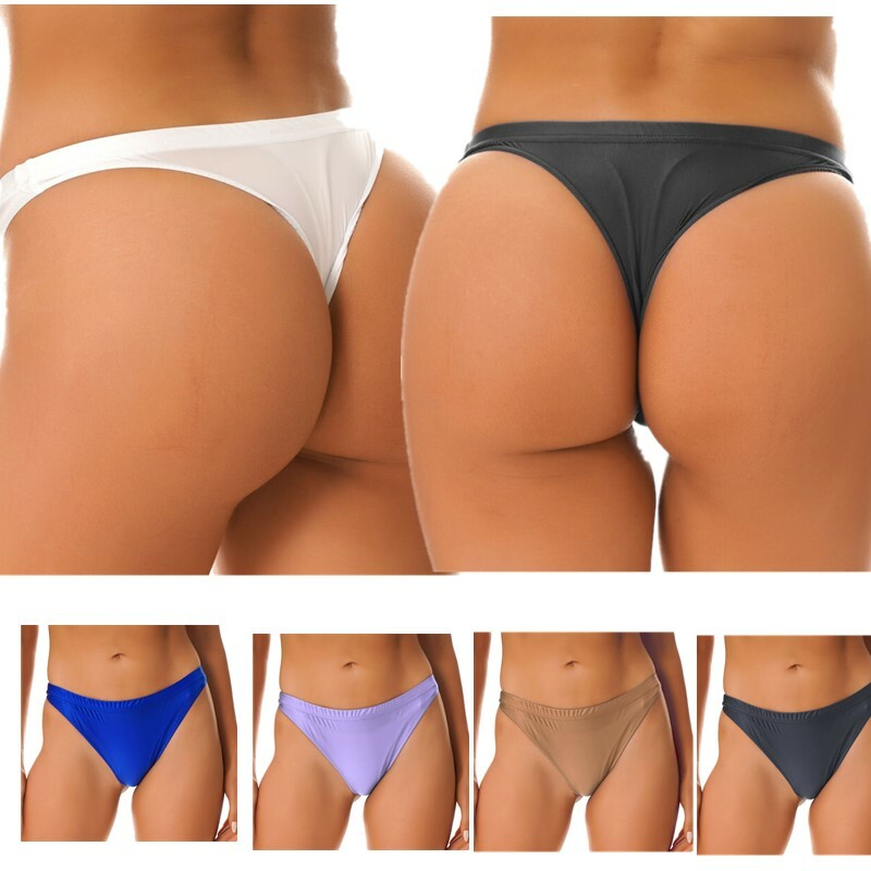 Womens Glossy Low Rise Briefs Solid Color Elastic Waistband Panties.