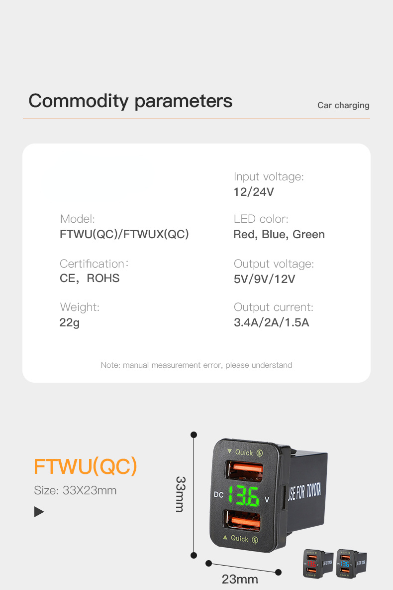 Perfect Fusion 36W Fast Car Charger For Toyota USB Socket 12V Dual Port QC3.0 Mobile Phone waterproof usb voltmeter Car Charger dual usb QC3.0 fast charging,max total output of 36W.(2021 Latest)