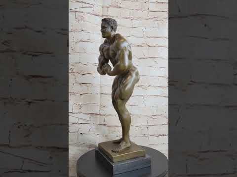 Hand Made Nude Muscular Male Posing Bronze Sculpture Marble Statue Decor