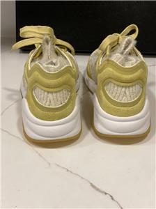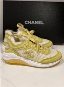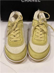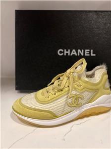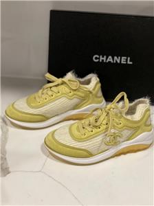 Fabric and suede lace up sneakers. CC logo and CHANEL signature on the sides. TPU midsole. Rubber sole. Made in Italy. Designer color: Yellow
