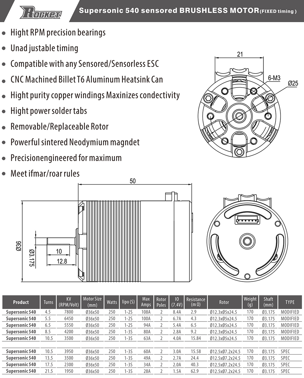 Item no.:Supersonic 540 Sensored Brushless Motor