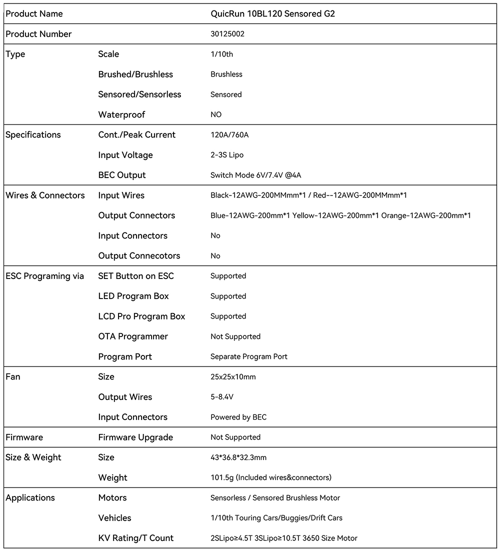 Hobbywing QincRun 10120BL Sensored ESC Features: