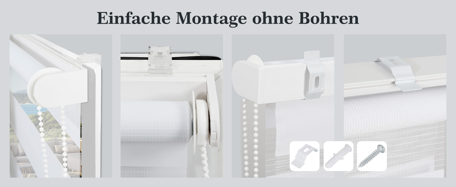 3️⃣ Einfache Montage – Schnelle Installation mit Klemmfix ohne Bohren, alternativ sichere Befestigung mit Bohren möglich. Fensterrahmen bleiben unbeschädigt.