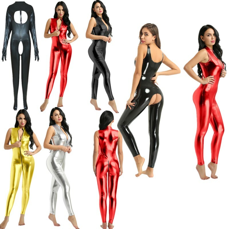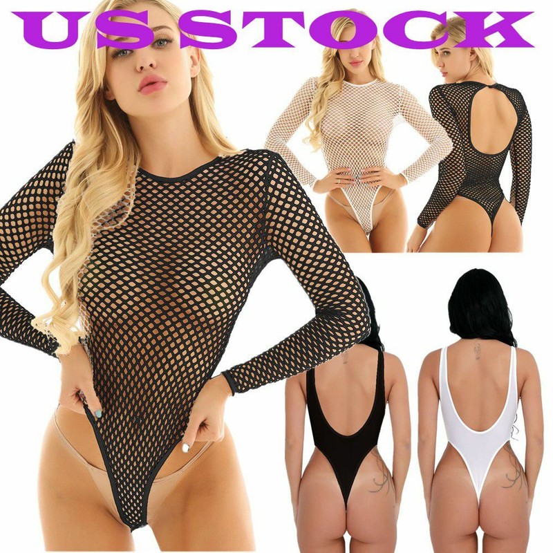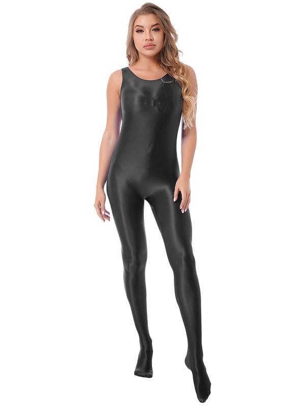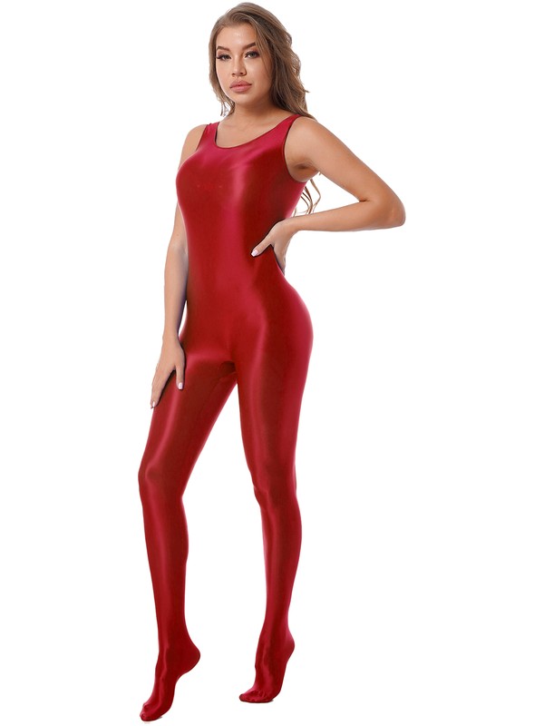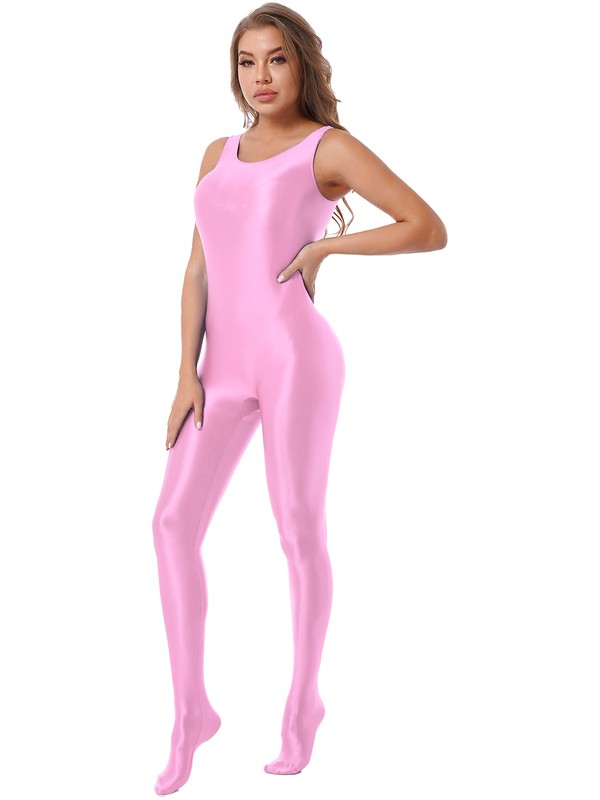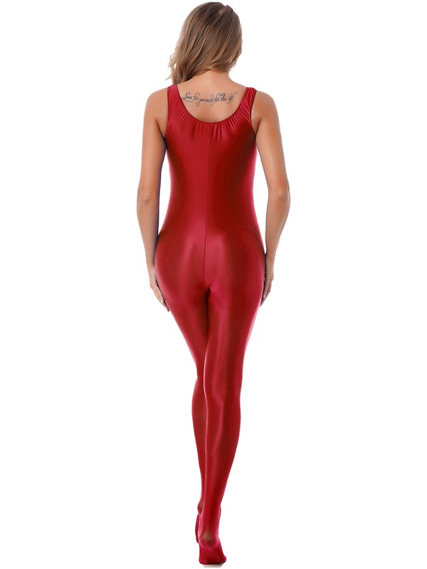 Womens Sleeveless Full Body Bodysuit Solid Color Round Neck Bodystocking Nightwear.