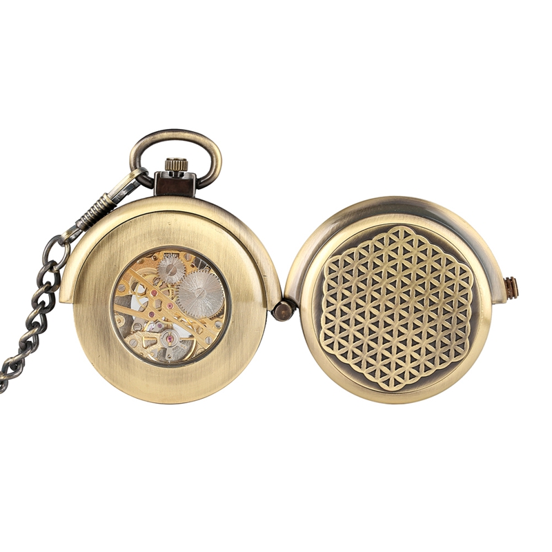 Steampunk Bronze Mechanical Pocket Watch Retro Rotating Cover Roman Numeral Dial