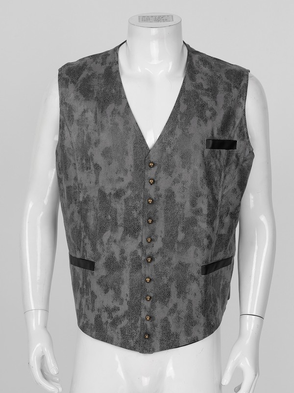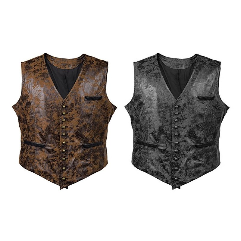 Men Fashion V Neck Single Breasted Vest Casual Sleeveless Faux Leather Jacket Waistcoat.