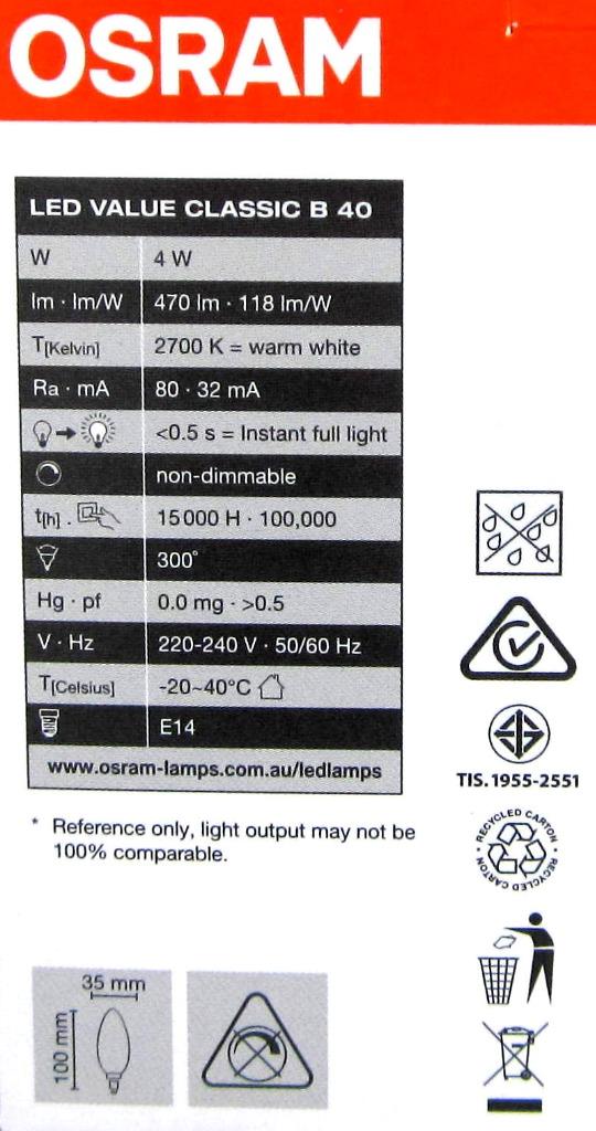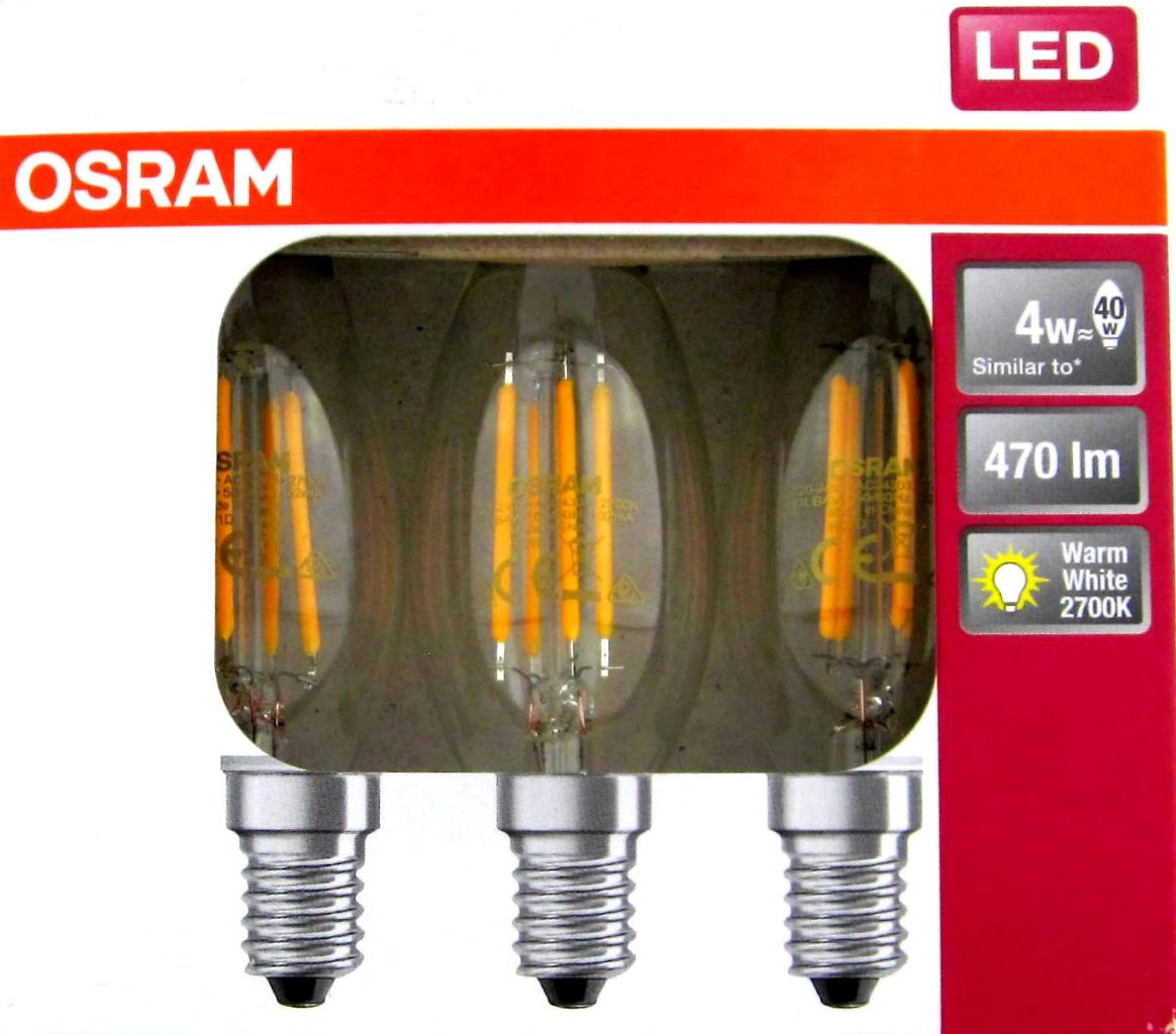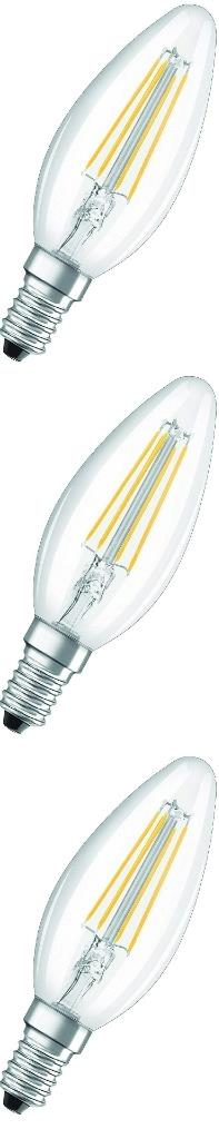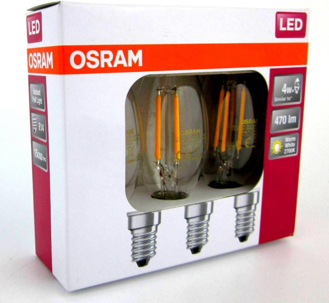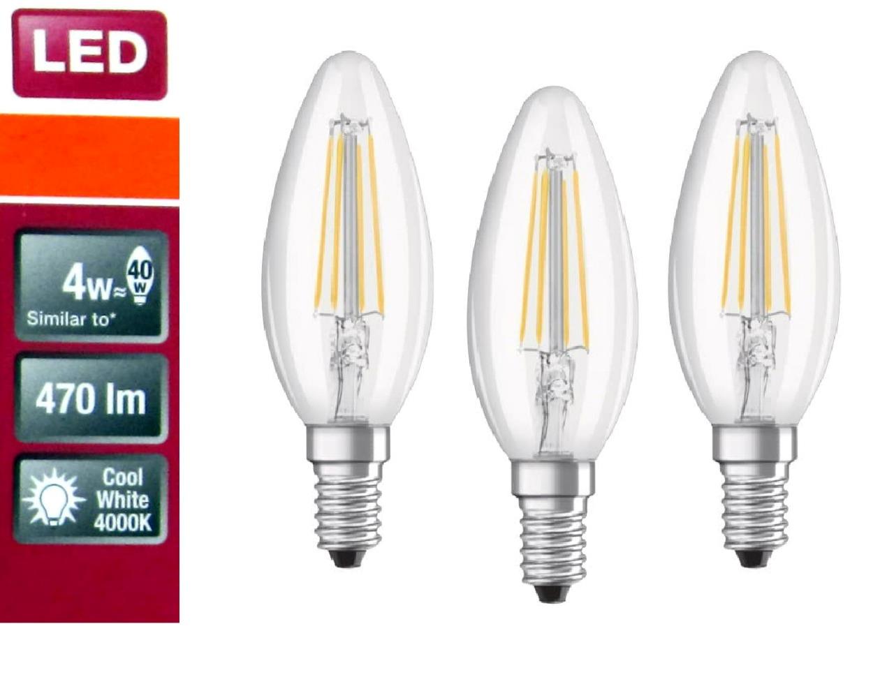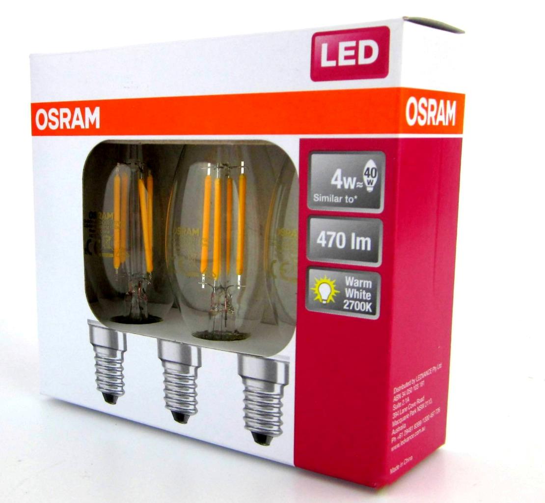 Osram 3 Pack 4W Candle Shape Non-Dimmable LED Bulb E14 Screw Base Clear Warm White 2700K