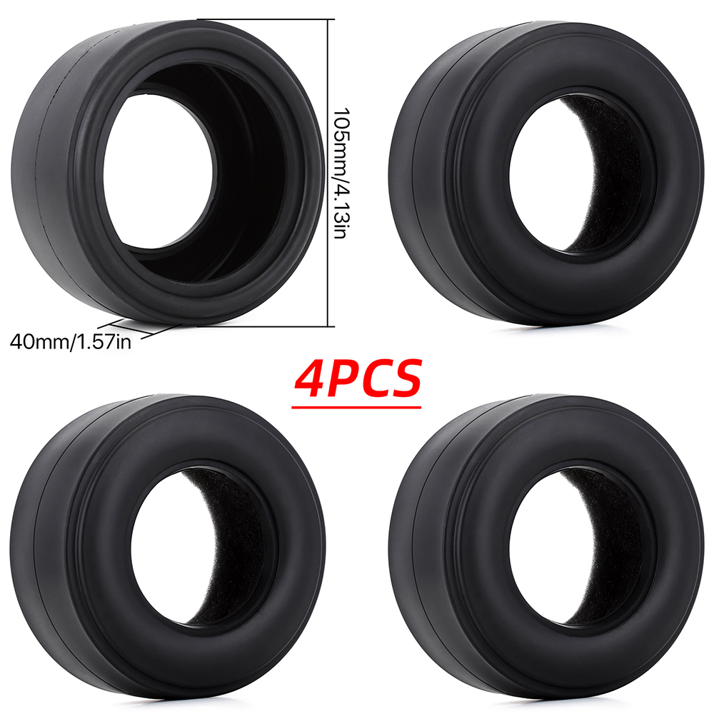 1.RC Vehicle Wheels and Tires Size: The size of our RC Wheels and Tires, Diameter: 105mm / 4.13in Width: 40mm / 1.57in Drive Hex:12mm / 0.47in