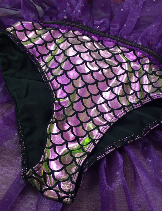 Spaghetti shoulder straps, bling-bling mermaid top bodice printed with fish scales pattern.
