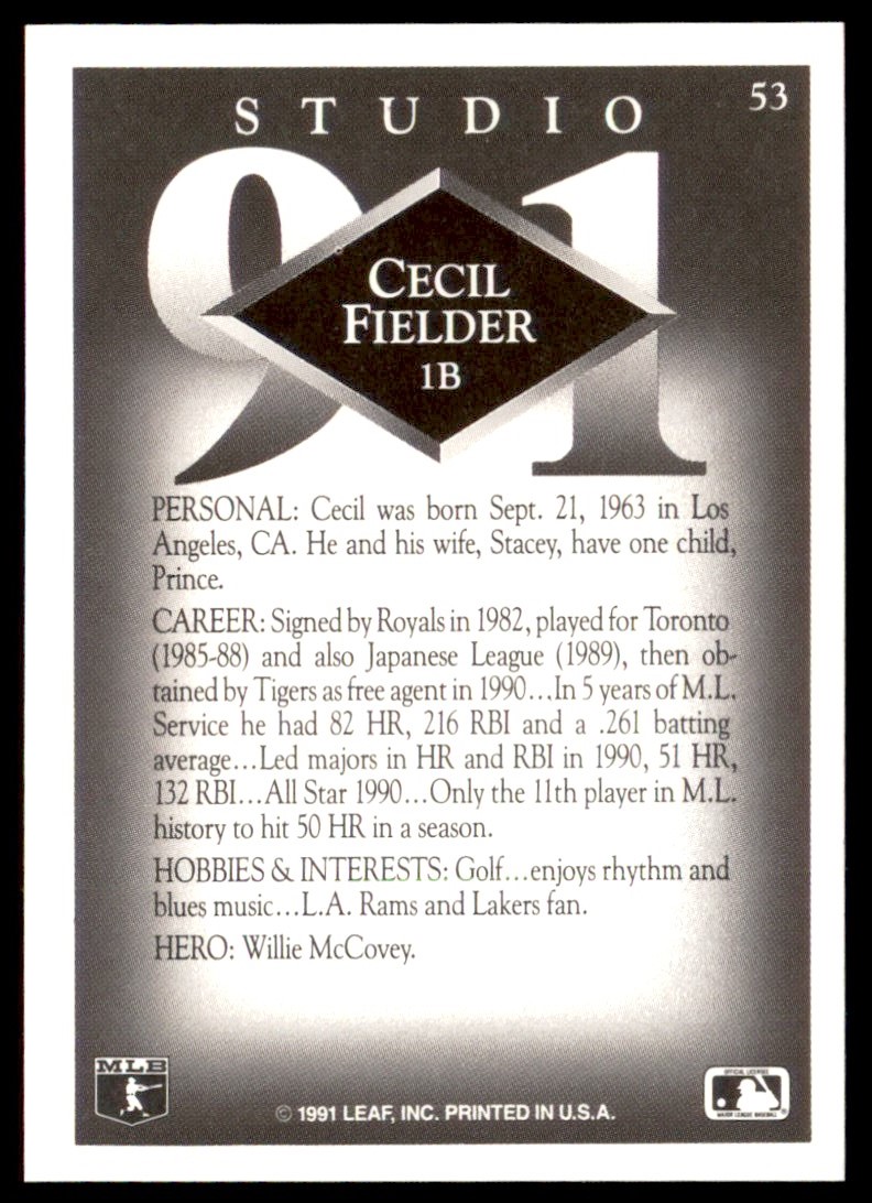 | 1991 Studio 53 Cecil Fielder | ||||||||||||||||