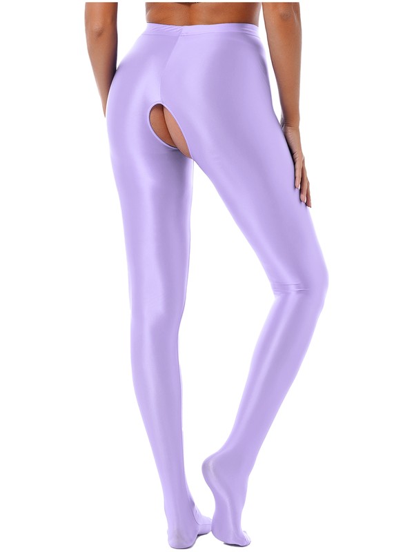 Womens Glossy Crotchless Pantyhose High Waist Elastic Waistband Leggings Nightwear.