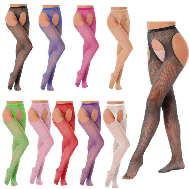 Womens Hollow Out Stockings Leggings Mid Waist Cutout Crotchless Pantyhose.