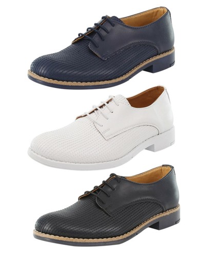 The lace-up oxfords shoes are a stylish choice for boys because of their textile patterned outer, which will not press against the toes while walking or dancing.