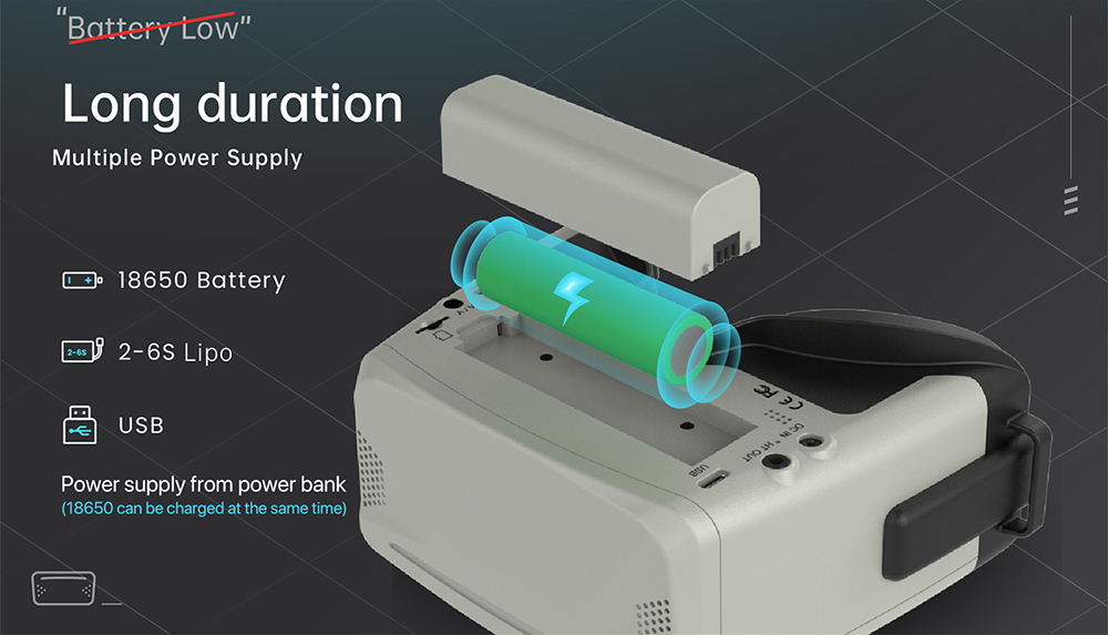 4.Long Duration:Multiple power supply( Battery/2-6S Lipo/USB)