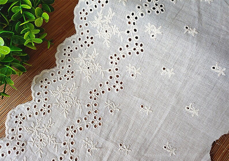 Off white scalloped edging cotton lace trim for doll dress, bags, home decor