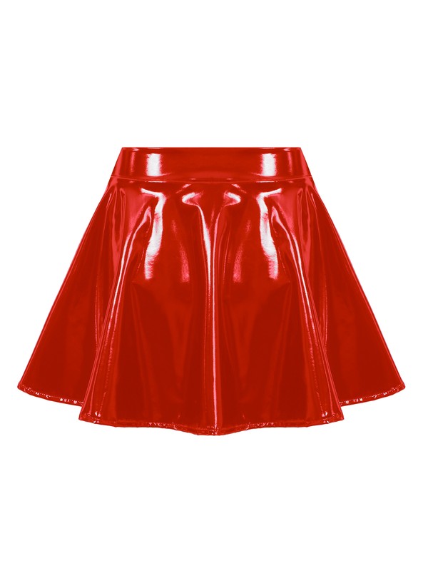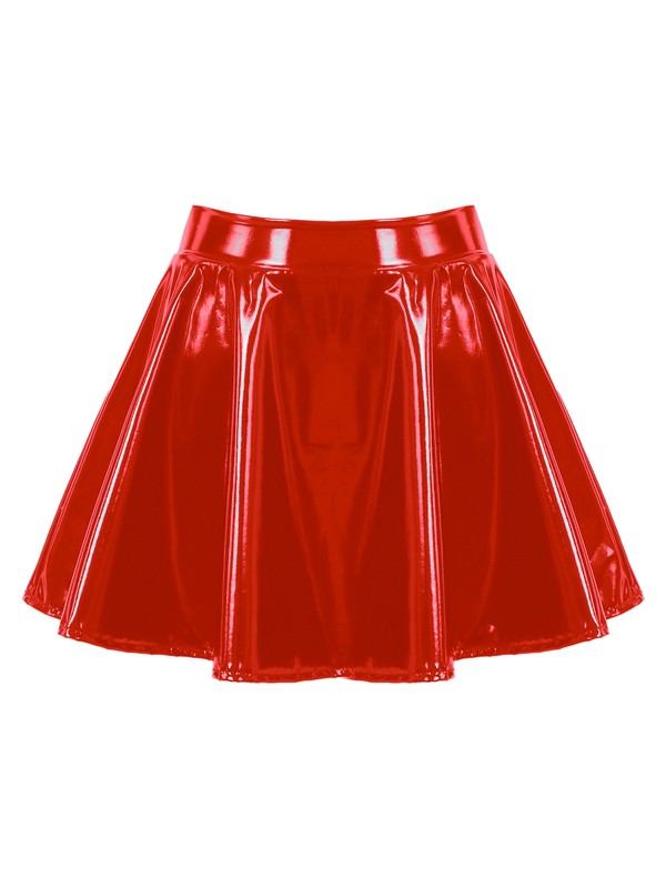 Womens Glossy Patent Leather Flared Skirt Invisible Zipper A-Line Mini Skirts.