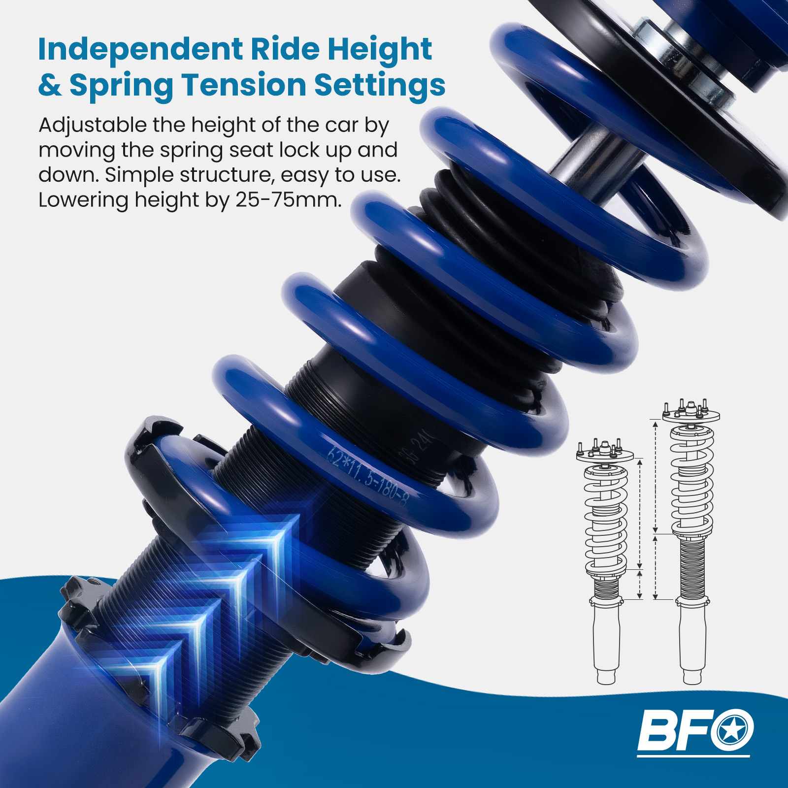 2. Height adjustable---lower your car 25-75mm (depending on vehicle models) to get a performance ride