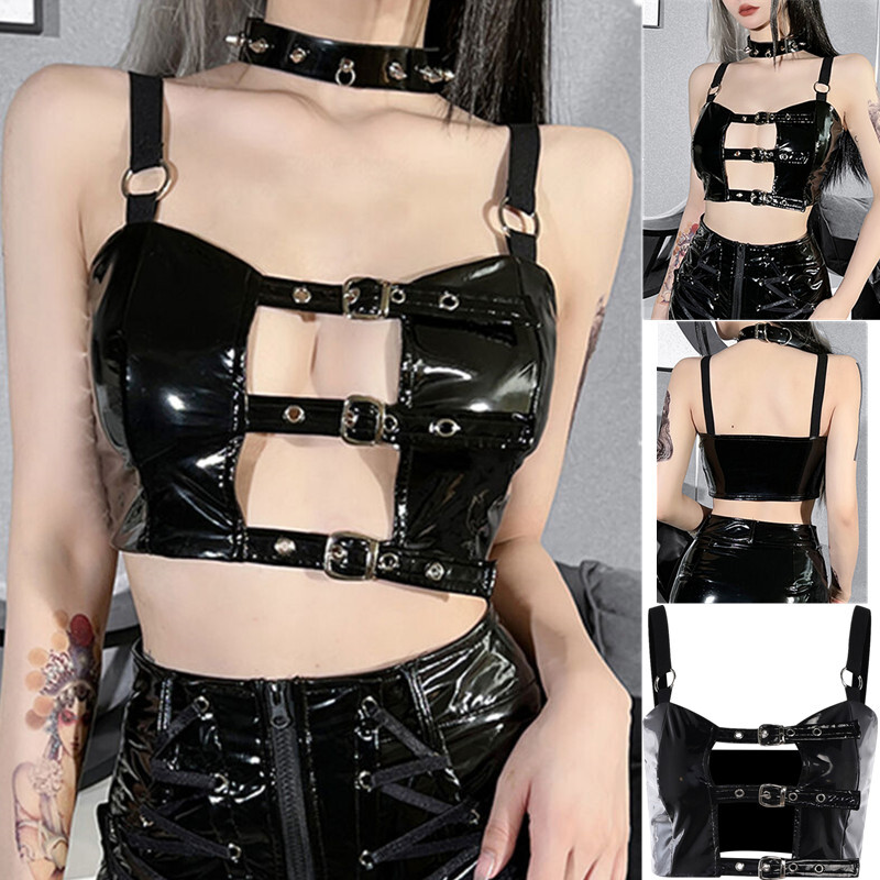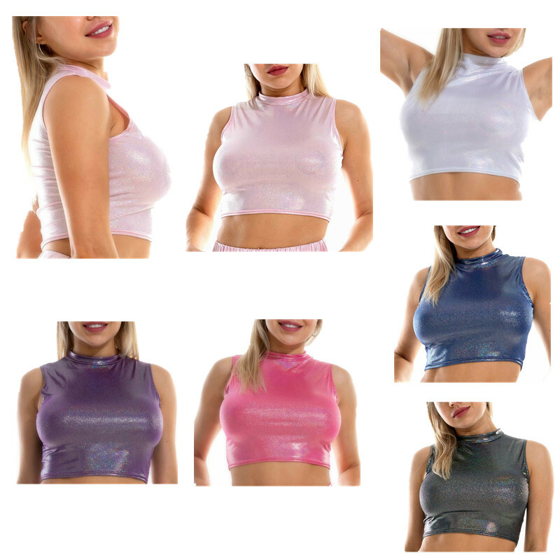 Womens Glossy Crop Tops T-shirt with Shorts Stretchy Fitness Sportswear Swimwear
