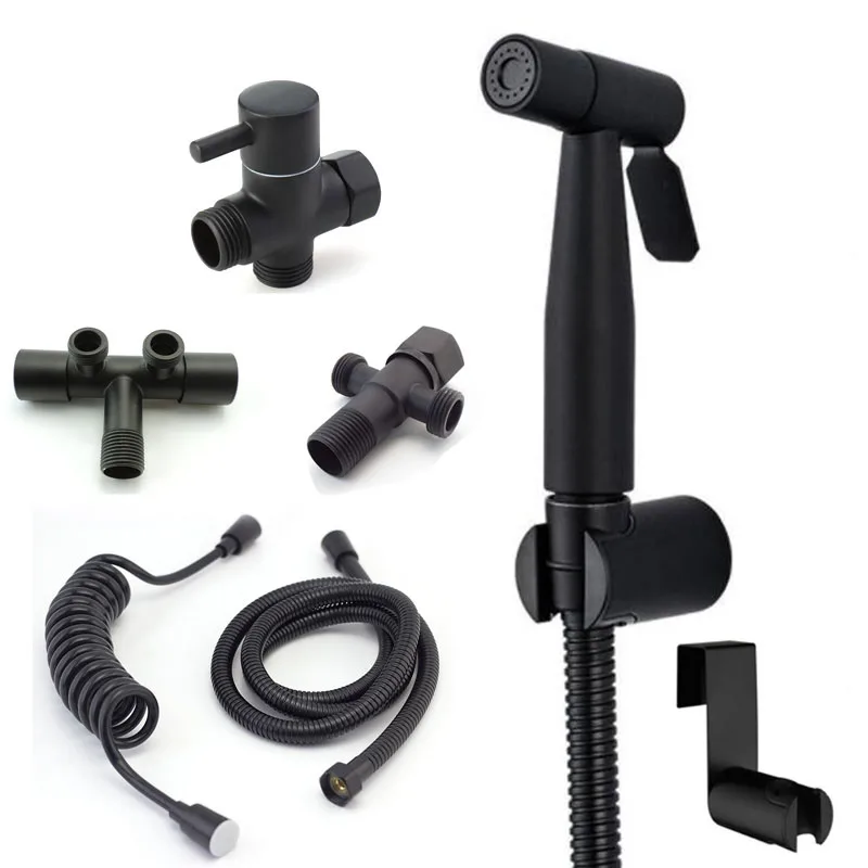 Black Stainless Steel Toilet Bidet Sprayer ass Shower Head Clean washer muslim water hose Kit ducha wc Bathroom accessories