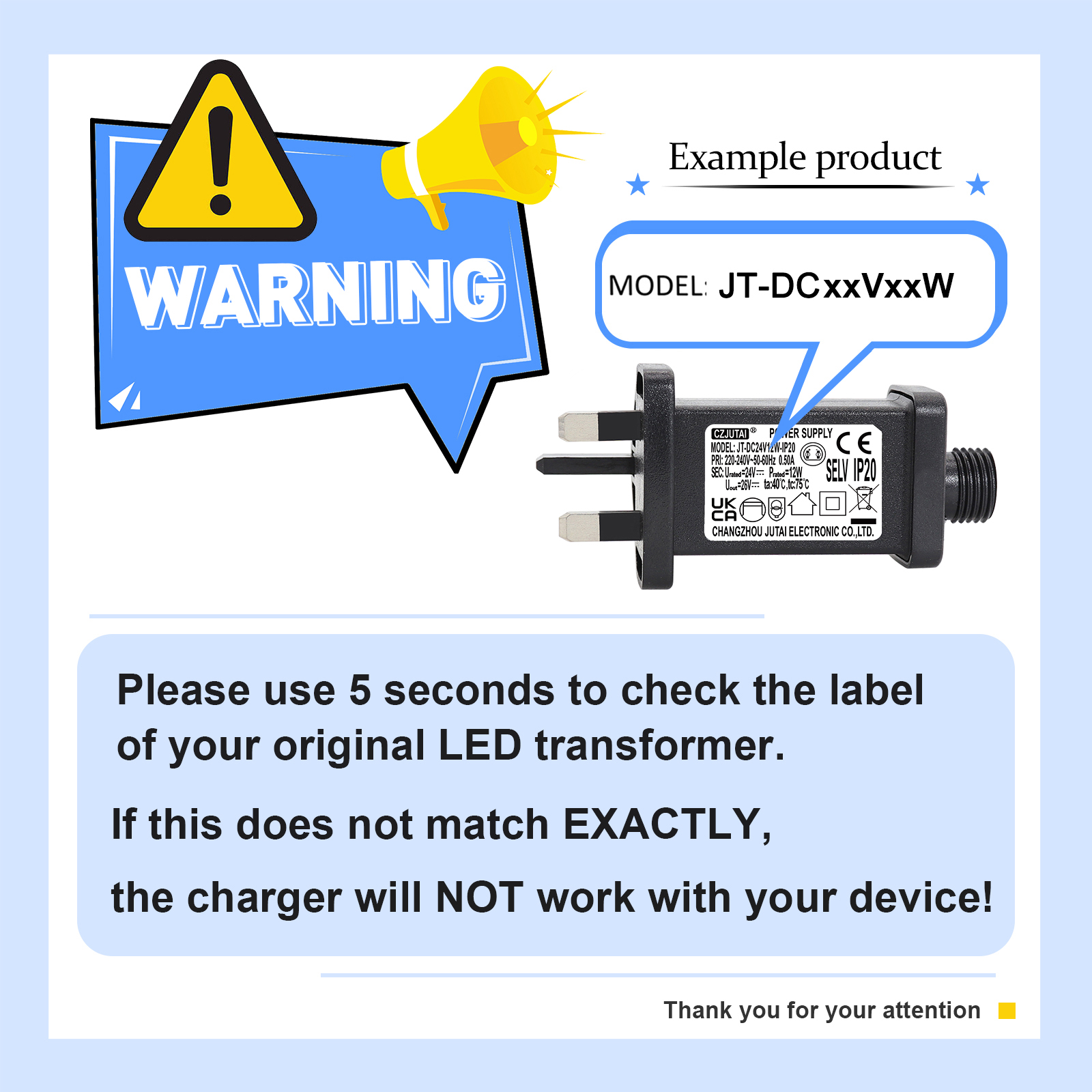Power Supply for CZJUTAI JT-EL/FC24V12W-IP44 Christmas Lighting