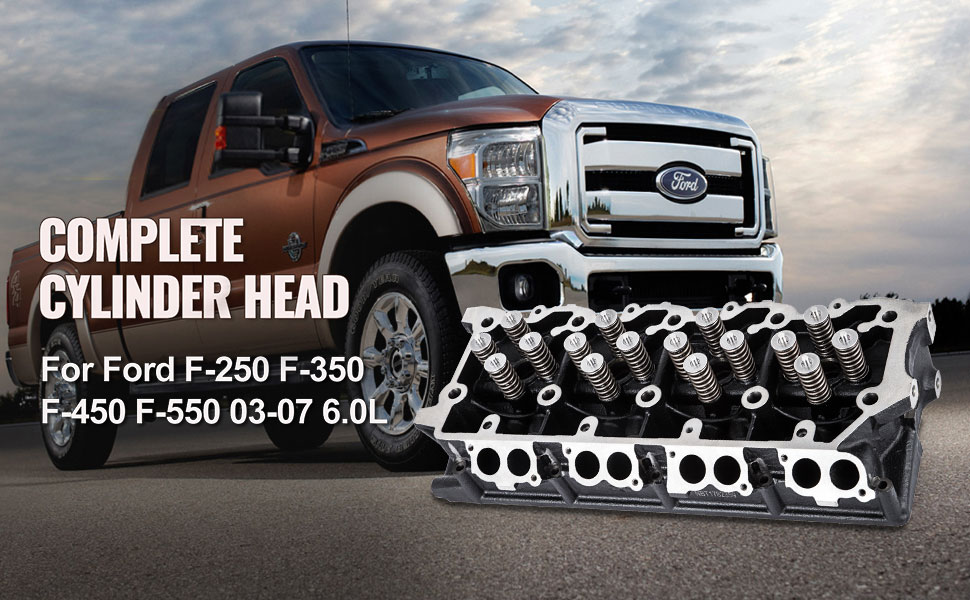 This cylinder head perfectly matches the Ford F-250 F-350 F-450 F-550 03-07 6.0L power stroke diesel 18 mm. Product dimensions (L x W x H): 53 x 22 x 9 cm / 21 x 8.5 x 3.5 in.