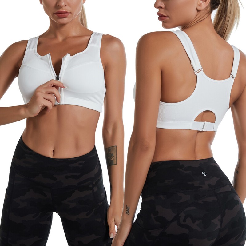 Women Sports Bra Padded Zip Front Closure Shockproof Workout Yoga Tops Impact US