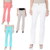 Designed with a slightly slimmer knee and a skosh more flare at the leg opening, this modern boot-cut flatters your figure with a silhouette that's subtly different yet seriously stylish. High heels, boots, ankle booties, loafers — everything goes with DG2's modern boot-cut jean.