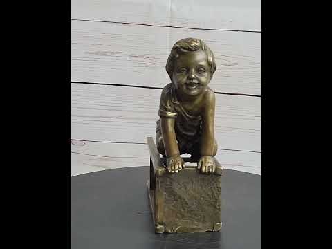 Experience the joy and innocence of childhood with this exquisite bronze sculpture of a playful little boy. The artist has skillfully captured the boy's bubbly and smiling face as he sits on his knees, holding on to an overturned stool. The details of the boy's play clothes, which sag loosely on his body, add a touch of authenticity and charm to the piece. Created using the lost wax method, this sculpture showcases the artist's dedication to craftsmanship and attention to detail. The absence of a base allows the sculpture to stand freely, making it a versatile addition to any space. With J. Clara's signature, this sculpture is a cherished work of art that celebrates the joy of youth.