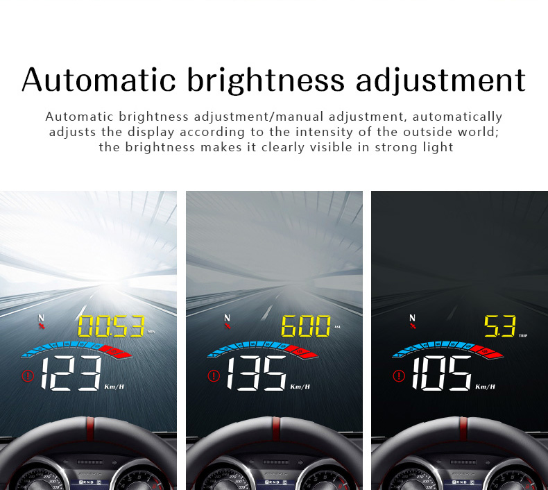 • Simple Display: Vehicle Speed HD Display, practical function, let you drive more comfortably for a long time. (plug and play--Available for all car ) The Nano-Technology - High clearness projector, to eliminate unwanted reflections and can make the display information sharper. The radians displayed above the data are colored, which makes the projection even cooler. The Automatic and manual brightness adjustment mode, and easier to control the HUD.