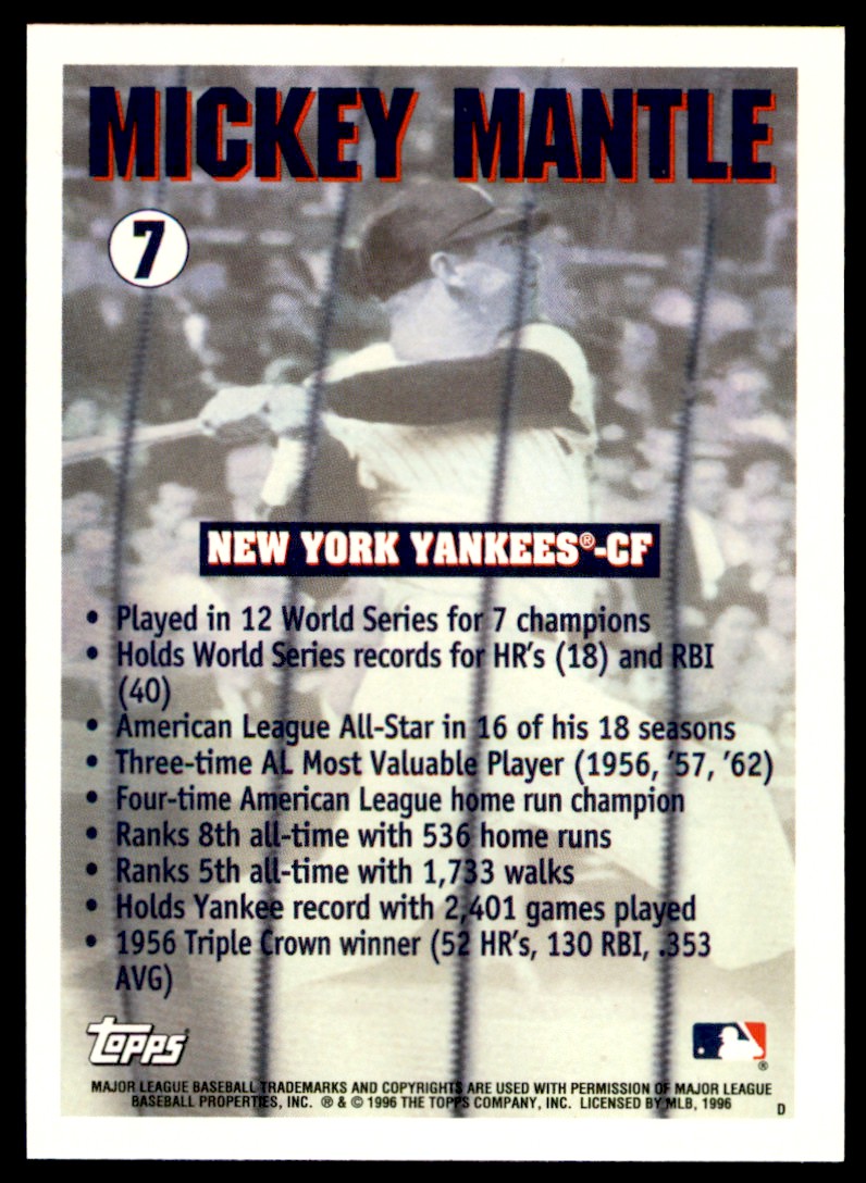 1996 Topps 7 Mickey Mantle Gold Stamp