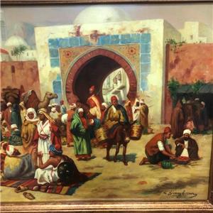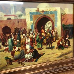 Up for sale is a N. Bingham signed An Arab Market by City Gate framed porcelain plaque painting. Please view pictures and custom item specifics for more info.