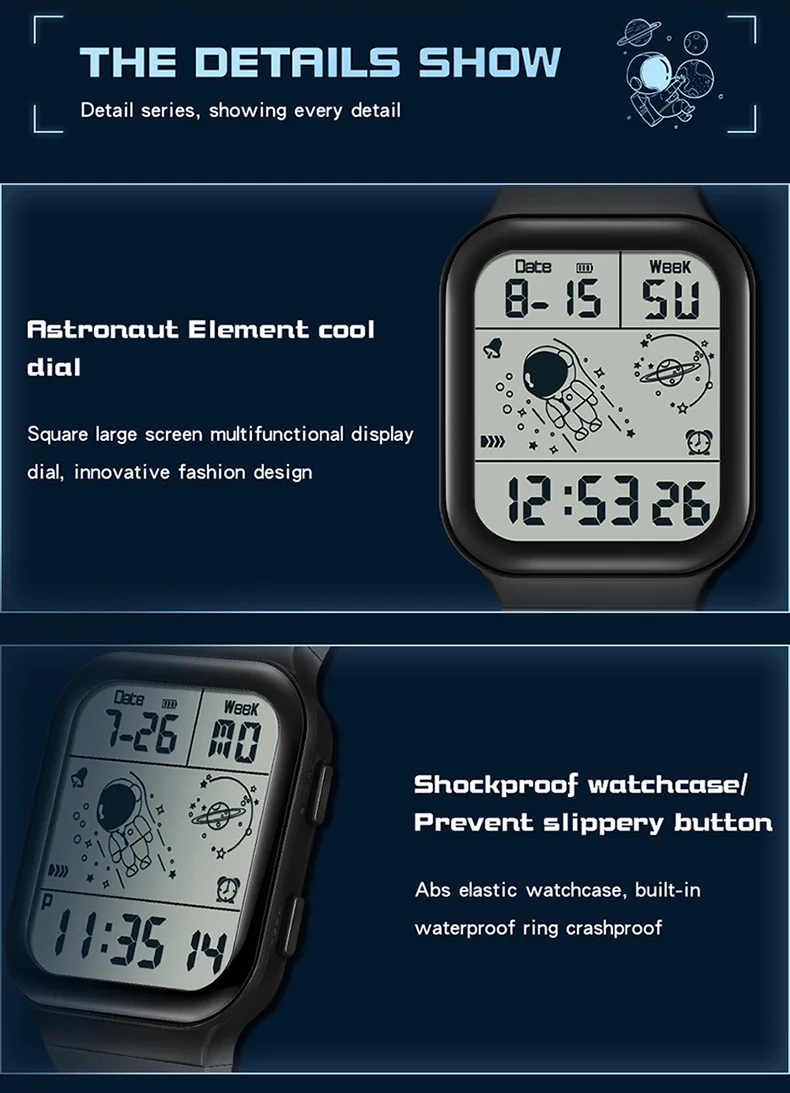 SANDA Fashion LED Digital Watch Multifunction Wrist Watch Rectangle G Style Watches Men's Sport Waterproof Watches